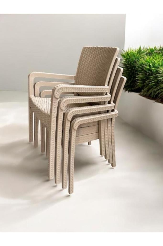 4 Adet Karizma Rattan Kollu Sandalye Koltuk 4'lü Set Kapiçino