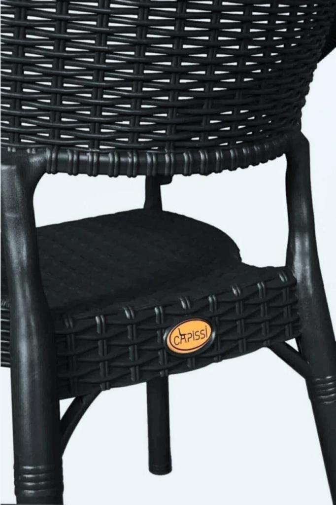 6 Adet Bambu Rattan Kollu Sandalye Koltuk Siyah