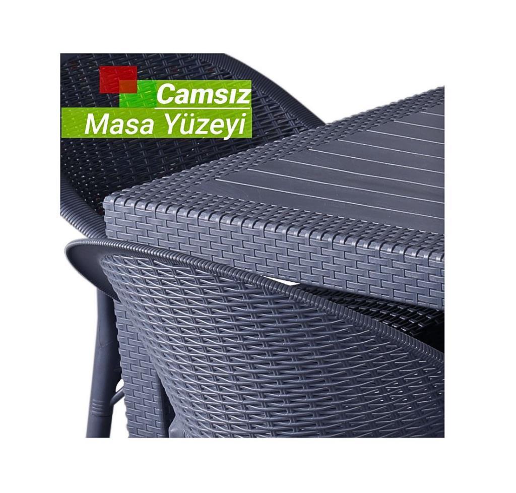 Camlı Antrasit 90x150 cm Rattan Bahçe Balkon Masası