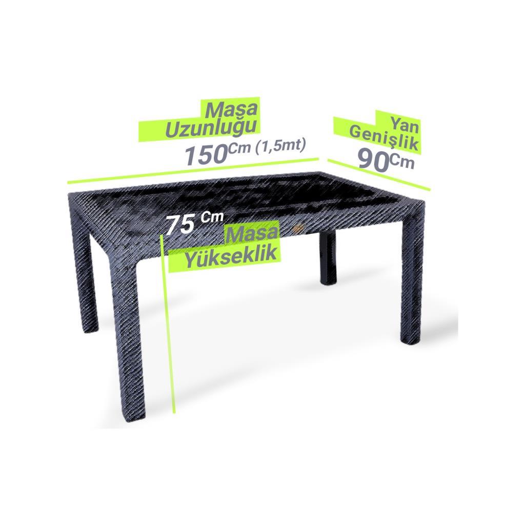 Camlı Kapiçino 90x150 cm Rattan Bahçe Balkon Masası