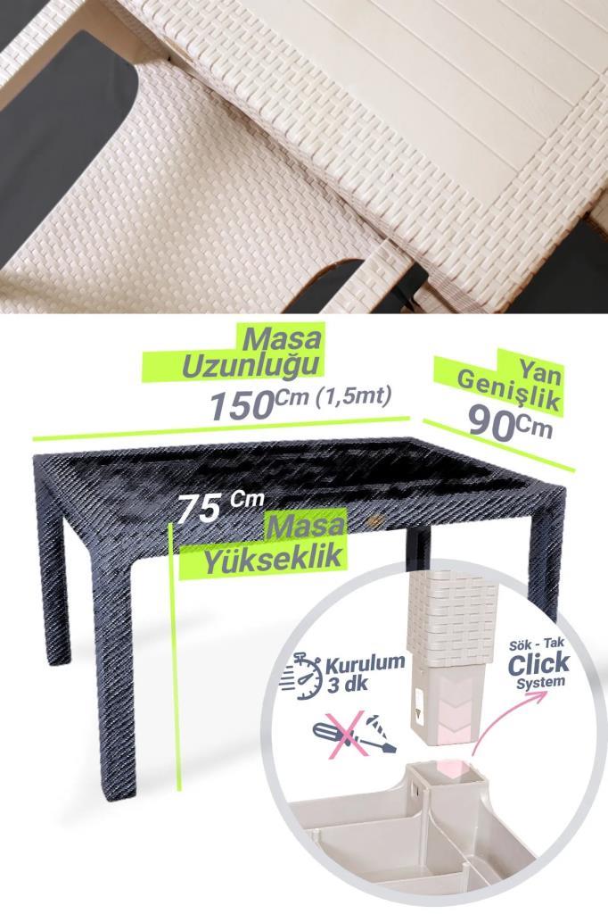 Camsız Kapiçino 90x150 cm Rattan Bahçe Balkon Masası