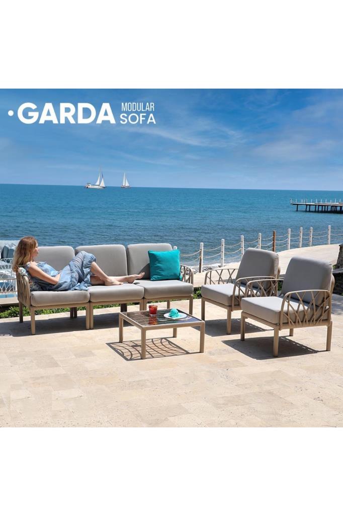 Garda Sofa Set, İtalyan kalıpları kullanılarak gaz yardımlı enjeksiyon yöntemiyle üretilmiştir. Dayanıklılığı artırmak için orijinal kopolimer malzemeye cam elyafı eklenmiştir. Güneş ışınlarına ve renk solmasına karşı UV korumalıdır. Antistatik ve antioksidan katkı maddeleri sayesinde toza, elektriklenmeye, asit yağmurlarına ve paslanmaya karşı korunmaktadır. %100 dış mekan kumaşından yapılmış, su itici, UV korumalı ve açık hava kullanımına uygundur. Garda Sofa Koltuğu hem iç mekanlarda hem de dış mekanlarda kullanıma uygun bir üründür.