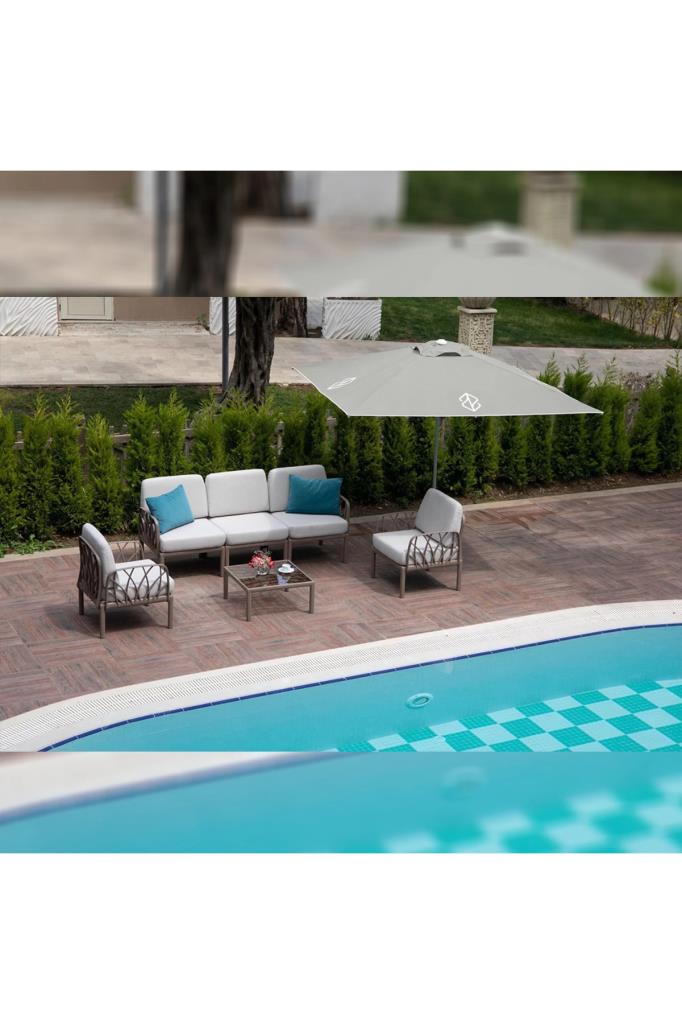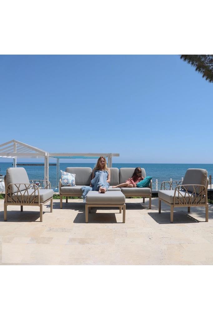 - Novussi Garda Minderli Bahçe Oturma Grubu 1x Üçlü + 2x Tekli + Camlı Orta Sehpa