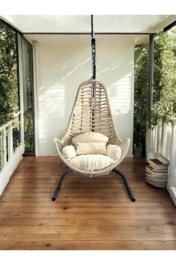 Zen Bahçe ve Balkon Salıncağı Tek Kişilik Ekru