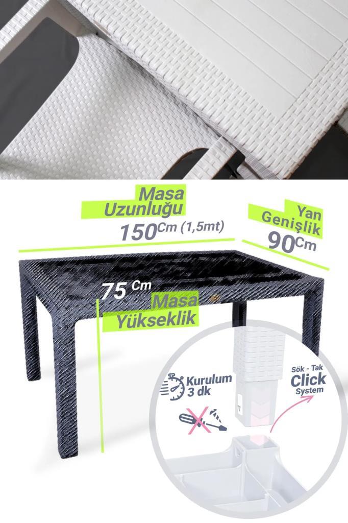 - Masa Ölçüleri: 90x150 cm – Yerden Yükseklik : 75 Cm